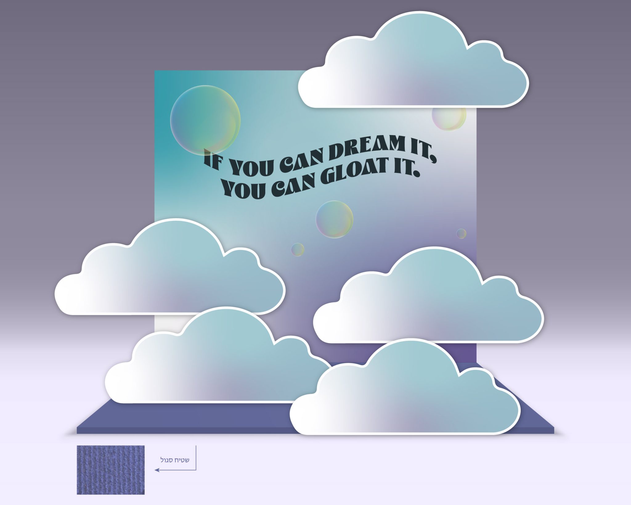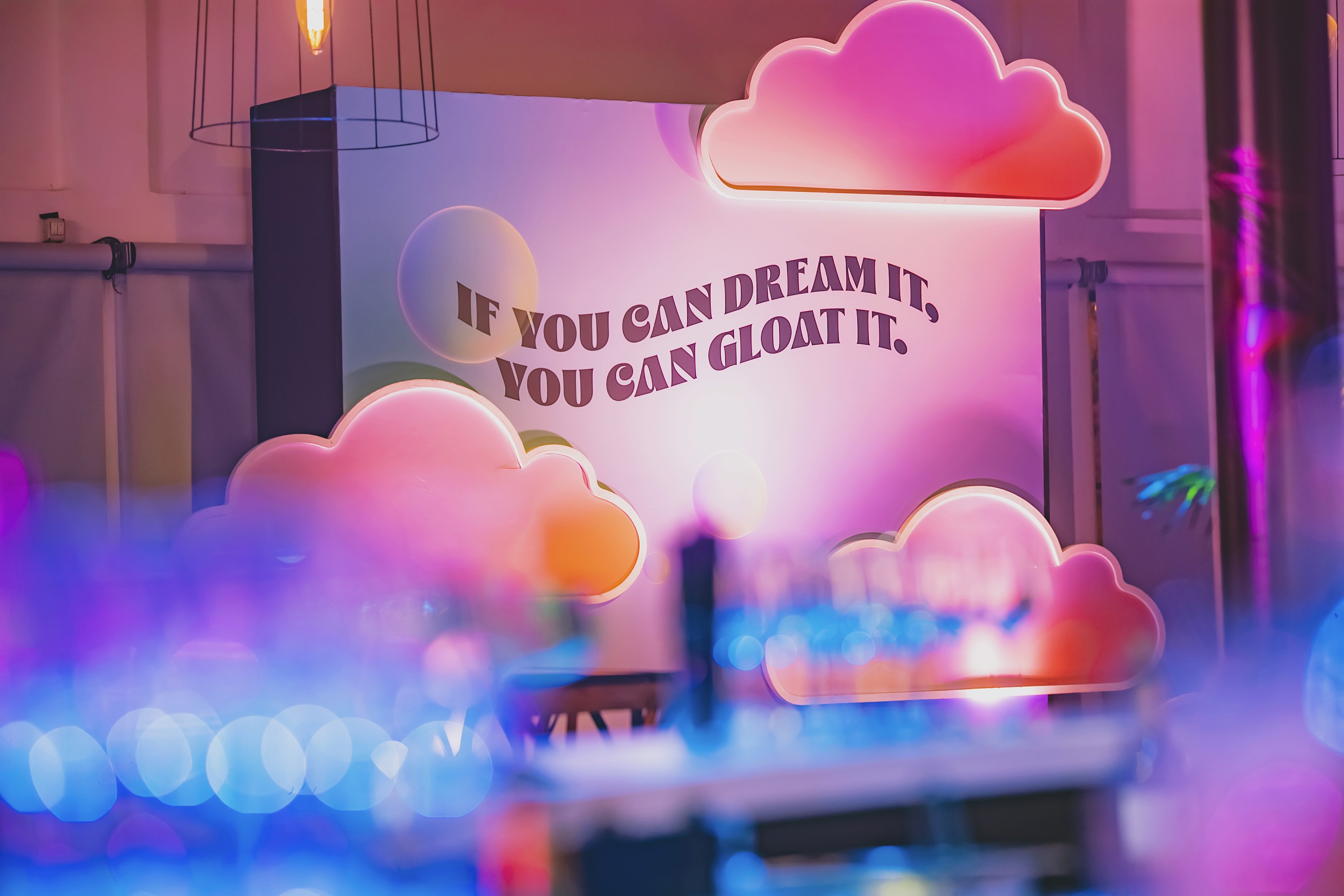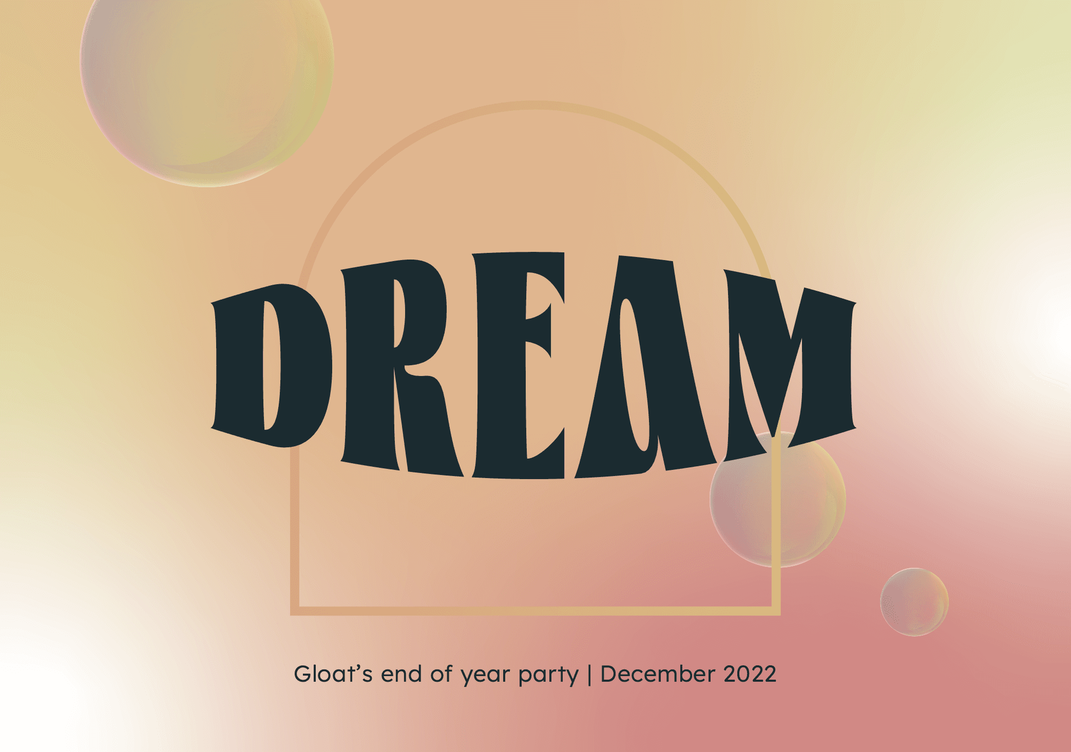 Gloat’s end-of-year event was built around dreaming and imagining what’s next. I led the visual concept and creative direction, crafting a soft, immersive world inspired by pastel tones and fluid forms. From a wishing fountain to custom photo booths, every element was designed to feel cohesive, playful, and slightly surreal. Rounded typography and flowing shapes reinforced the dreamlike atmosphere - turning the event into an experience of imagination, connection, and wonder.